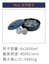 | NO2 | 水平轉(zhuǎn)子 | 6×2400ml | 4000r/min | 5400xg |
