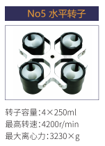| No5 | 水平轉子 | 4x250ml | 4200r/min | 3230xg |