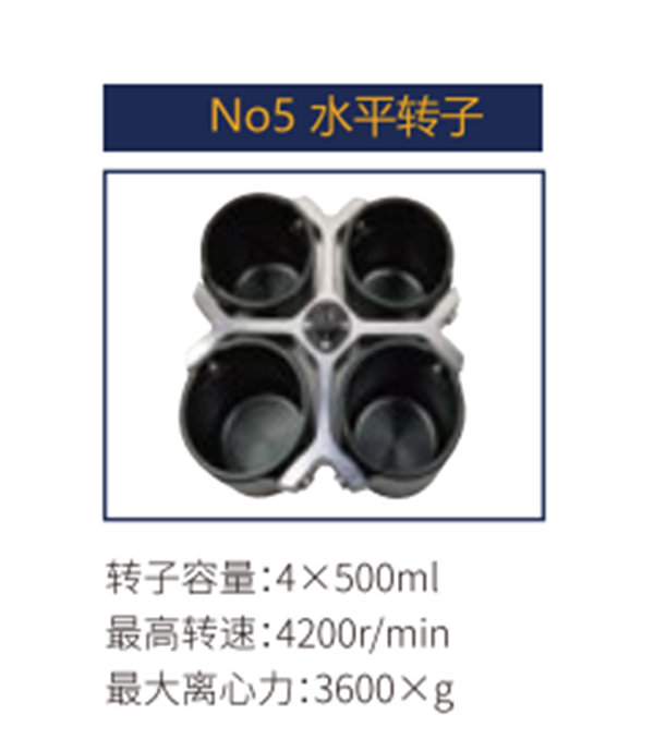 No5 | 水平轉子 | 4X 500ml | 4200 r/min | 3600xg |