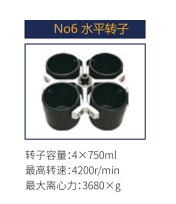 No6 | 水平轉子 | 4x750ml | 4200 r/min | 3680xg |