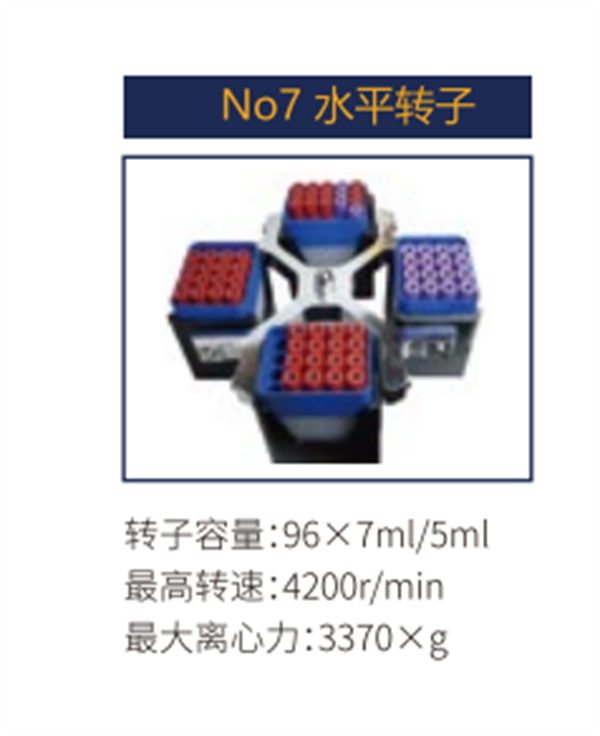 No7 | 水平轉子 | 96X7ml/5ml | 4200 r/min | 3370xg |