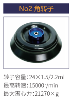 | No2 | 角轉(zhuǎn)子 | 24x1.5/2.2 ml | 15000 r/min | 21270xg |