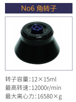 | No6 | 角轉(zhuǎn)子 | 12x15ml | 12000 r/min | 16580xg |